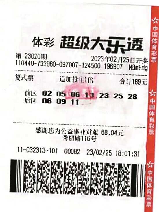 新快报讯 记者陆妍思 通讯员惠州体彩报道 2月25日,惠州市博罗县园洲镇秀丽路4411032313体彩实体店中出大乐透第23020期1注一等奖,中奖彩票是一张投注金额为189元的7+3组合复式追加票,单票奖金1001万元。在2月的最后一天,千万奖金得主邓先生(化名)在家人的陪同下,淡定现身惠州体彩兑奖大厅兑奖,为惠州当地贡献个人偶然所得税199万余元。