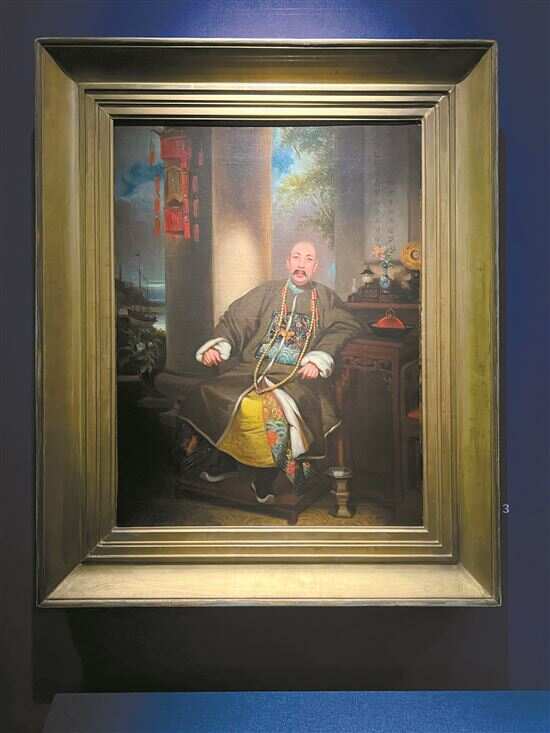 ■林呱或其画室绘,广利行行商卢茂官,1830-1860年,布本油彩,粤博藏。潘玮倩摄于粤博“焦点”展