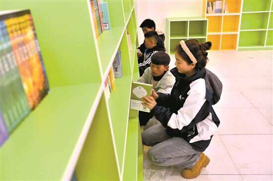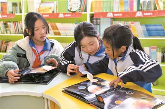 ■药山镇中心小学的同学们在新阅读室阅读新书。