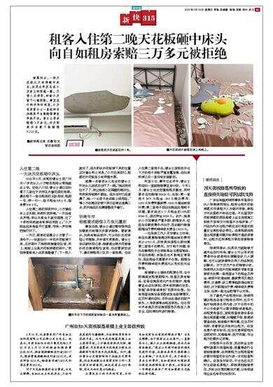 凌晨时分,一块天花板从天而降砸中床头,这是去年发生在小方身上的惊魂一幕。尽管人没受伤,却给小方留下心理阴影。事发至今的半年时间里,小方母亲曾女士一直在和自如租房平台就赔偿事宜争执不休。曾女士要求赔偿3万余元,对方则表示目前只能赔偿6150元。