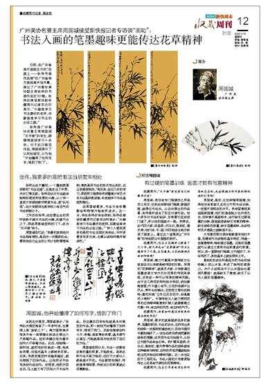 周国城:要求的就是画家自身的修养、笔墨的积淀、书法的功夫,这样写出来的线条一定是刚韧遒劲有力,而诗书画印中篆刻搞好了,一定会自然而然地把篆刻线条的理解,运用到书法与绘画中,从而让书画作品有金石味。我们看吴昌硕、齐白石、黄宾虹、潘天寿等作品的线条就有这种凝练与刚韧,这样的用笔用墨就能体现出花卉独自的精神风貌。这一点也区别于工笔花鸟。书法入画的大写意更能传达上述具有代表性的花草精神。