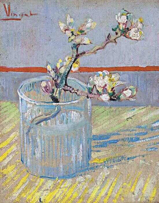 1888年,梵高来到普罗旺斯。他到达阿尔勒还不到一个星期,就给弟弟提奥写信说,霜雪仍在持续,但他还是从一棵奋不顾身绽放的杏树上取下一个花枝,画了两幅小型习作。