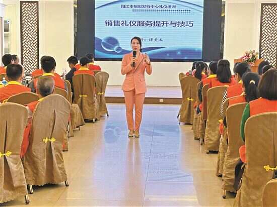 新快报讯 记者陆妍思 通讯员谭木娇报道 为完善全市福彩系统从业人员服务基本行为规范,达到规范一线从业人员服务行为,提升福彩销售网点服务质量,提高福利彩票品牌形象建设,3月13日至15日,阳江市福彩中心特邀请国家高级礼仪培训讲师谭美玉为阳江福彩销售人员200多人进行为期两天的礼仪培训,面对面地传经授业。由于本次培训内容量大,为了取得更好的培训效果,市福彩中心根据实际情况分区分场进行培训,一共安排2场次,每场培训时长共达5小时。