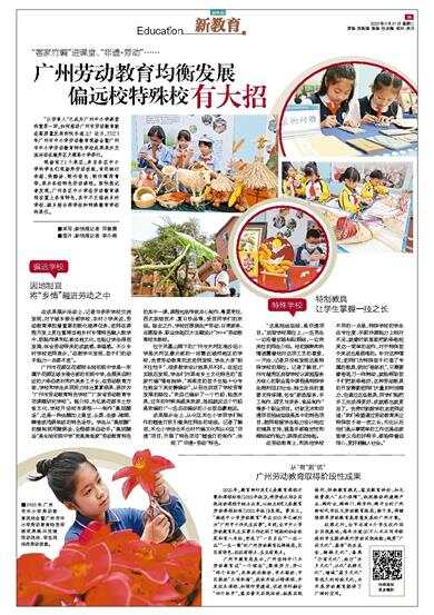 2022年,教育部印发《义务教育课程方案和课程标准(2022年版)》,将劳动从综合实践活动课程中独立出来,以独立的《义务教育劳动课程标准(2022年版)》呈现。事实上,“推进中小学劳动教育”早在2021年已被列为“广州市十件民生实事”,目前,全市中小学劳动教育民生实事工作达到了预期的社会效果和育人目标,形成了“一区多品”“一校一品”“一生一案”的广州劳动教育品牌格局,区区有特色、校校有特点、生生有亮点。