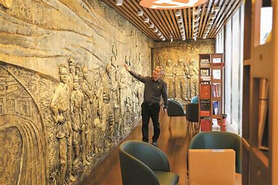 ■驻茂名市电白区麻岗镇工作队队员林桂鹏介绍党史学习教育基地壁画展现的红色历史。