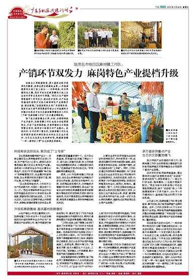 初春圣女果鲜脆透亮,夏日荔枝龙眼百香果处处飘香,秋季优质水稻遍地金黄,入冬饱满橙黄的沃柑又跃上枝头……四季轮换,作为果蔬供应大镇,茂名市电白区麻岗镇的大地上总会适时孕育出各类时令果蔬,“我们从生产端和销售端两个环节发力,通过技术扶持、农产品直供基地打造等方式助力麻岗特色产业提档升级、做优做强。”由国家税务总局广东省税务局、国家石油天然气管网集团华南分公司组建的乡村振兴驻茂名市电白区麻岗镇帮镇扶村工作队(下称“驻麻岗镇工作队”)队长戴宏辉提到。
