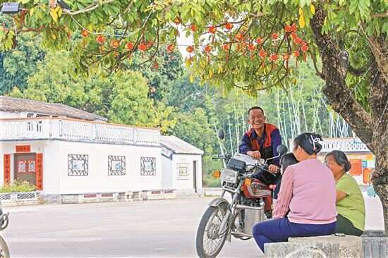 从鸟语花香的小广场走过,一边白墙青瓦、雕栏飞檐,另一边池水荡漾、绿树婆娑,几位村民凑在一处石桌石凳边高声谈笑,见到劳泰霖纷纷挥手招呼,“天热,书记坐下饮杯水!我们的鸡舍几时能用?”