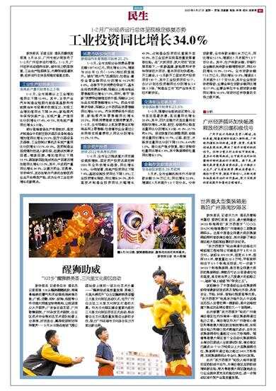 新快报讯 记者李应华 通讯员云宣报道 103头醒狮翻腾跳跃,将南粤雄狮的霸气和灵动展现得淋漓尽致;广绣、皮雕、钩针、软陶、烙画等12件非遗大师瑰宝惊艳亮相,让现场观众大开眼界;广东音乐曲艺团、广州歌舞剧院、广州杂技艺术剧院、白云区武术协会等知名艺术团队轮番上台表演,好戏连台,赢得现场街坊阵阵掌声……3月26日晚在地铁飞翔公园站旁上演的一场文化艺术大餐——“醒狮助威高质量发展 英雄三元里木棉花开”白云区醒狮群英荟暨三元里文化街区启动仪式,拉开广州白云区三元里文化街区打造的大幕。作为文化强区建设重要内容的三元里文化街区项目正式启动,标志着白云文化高质量发展迈出新的步伐,助力广州在城市文化综合实力方面出新出彩。