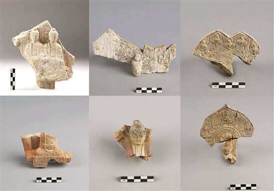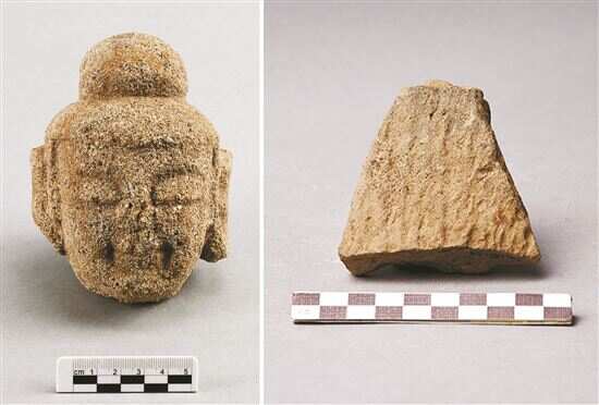 ■吉林珲春古城村1号寺庙址出土的佛像残片。