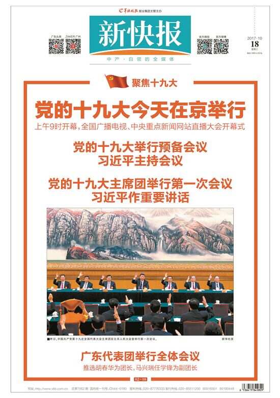 2017年10月18日,党的十九大开幕,新快报在保持规模报道的同时,推出了《砥砺奋进的五年》《创新粤章》等系列报道,重点报道了党的十八大以来,广东在以习近平同志为核心的党中央的坚强领导下,在加快建设社会主义现代化新征程上走在前列的奋进历程。