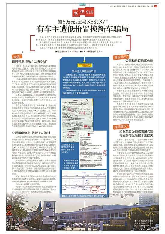 “新快315”栏目创立11年来,凭借传统媒体的影响力和公信力,利用新媒体的传播优势,通过一篇篇调查报道,揭露出住房、金融、美容、汽车、家装、家电、食品、旅游等消费领域不为人知的行业黑幕、消费陷阱,曝光那些侵害消费者权益的品牌、商家,坚持为维护消费者的合法权益发声,将舆论监督作为己任。