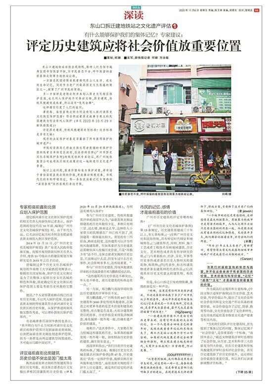 2020年10月,“东山口征拆建地铁站”计划在引发广州市民怀旧潮的同时,也引出了种种质疑,新快报“深读”新闻深挖东山口历史、文化底蕴,推动各方良性互动,释疑问、寻良策。到2022年,东山口拆迁中市民挽留的庙前直街有望被列入传统风貌建筑保护,公示的《广州市传统风貌建筑保护规定(征求意见稿)》增加了“凝聚社会公众情感记忆”这一认定标准。此外,经《新快报》报道,国家4A级旅游景区广州荔枝湾景区的核心——千年古村泮塘五约十余处年久失修的文物、历史建筑、传统风貌建筑启动修复。