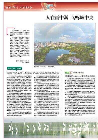 以华南国家植物园体系建设为统领,围绕绿化美化和生态建设,广州提出了“八大工程”,包括森林质量优化提升、城乡一体绿美家园优化建设、保护地建设提升、生物多样性保护培育、活力精品绿廊提升美化、古树名木保护修复、现代惠民林业集聚发展、全民爱绿护绿植绿,同时加强科技攻关建设。