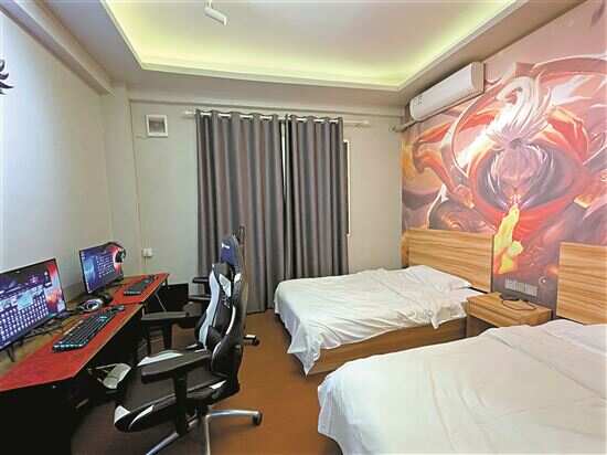 ■广州市内某电竞酒店房间内布置着大幅电竞海报。