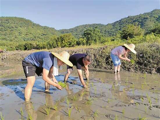 ■2022年7月农忙季节,工作队成员一起在南社村帮农户插秧。