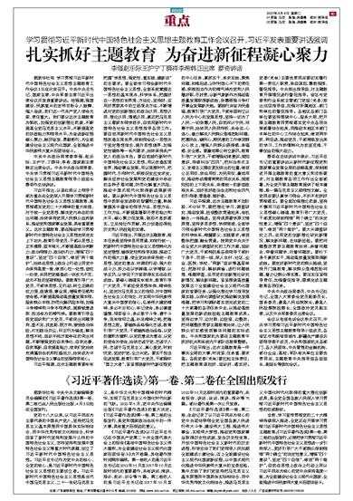当前,学习宣传贯彻党的二十大精神持续深入推进,全党正在开展学习贯彻习近平新时代中国特色社会主义思想主题教育。《习近平著作选读》第一卷、第二卷的出版发行,必将把学习贯彻习近平新时代中国特色社会主义思想进一步引向深入,更好引导广大干部群众深刻领悟“两个确立”的决定性意义,增强“四个意识”、坚定“四个自信”、做到“两个维护”,自觉在思想上政治上行动上同以习近平同志为核心的党中央保持高度一致,为全面建设社会主义现代化国家、全面推进中华民族伟大复兴而团结奋斗。