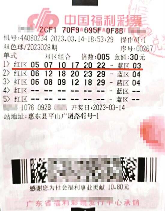 新快报讯 记者陆妍思 通讯员李娜报道 双色球第23028期开奖中,惠州一彩民中得二等奖5注,奖金102万余元。开奖一周后,中奖者张先生(化姓)来到市福彩中心兑取了百万大奖,他笑称“这次的中奖体验很不错!”