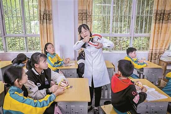 胡仕骏在课堂上给孩子讲了牙齿的基本知识和功能,以及日常的护齿方法,她发现大部分孩子对龋齿并不在意,且没有到正规的医院进行治疗。“实际上,龋齿看起来是小问题,若不及时处理,会对孩子身体健康造成很大的危害,其中包括影响生长发育、造成心理障碍、面部发育不对称等等。”