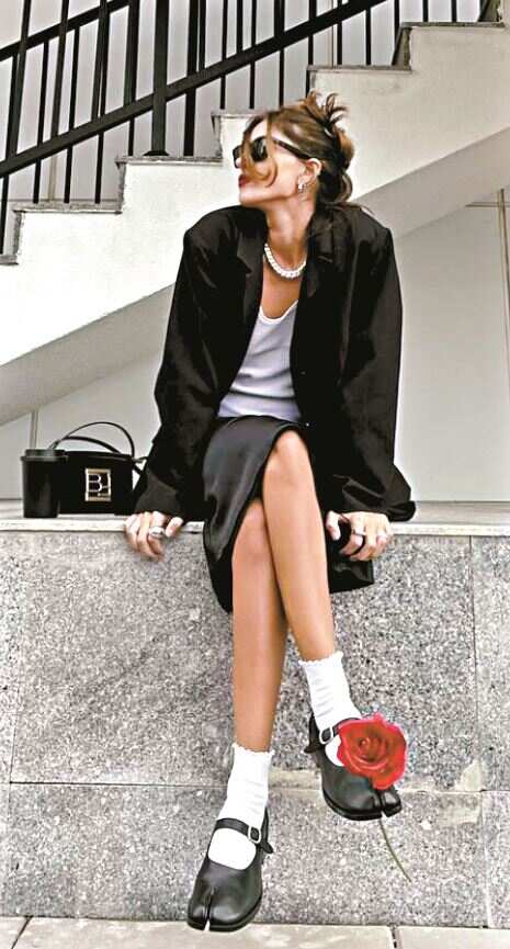 ■玛丽珍款分趾鞋配裙装选择比较多,古怪中带点可爱,搭长裙显优雅,搭短裙显俏皮。