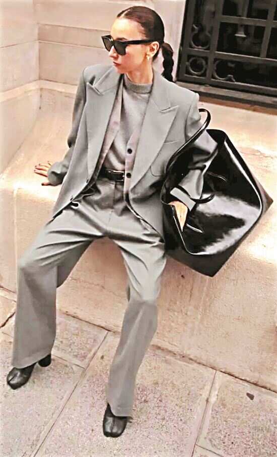 ■偏中性的分趾鞋,配利落西服套装就是风格十足的通勤穿搭。