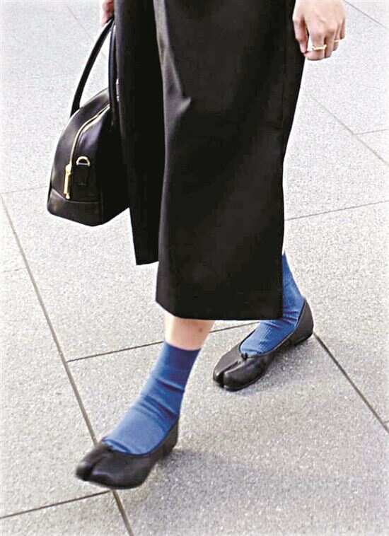 但分趾鞋对脚型的包容度较高,让脚趾能有更多空间,穿着舒适度相当可以。且经过多年演化,如今分趾鞋已与各种鞋型进行了重组再造,从最初的高跟踝靴到衍生出分趾玛丽珍鞋、分趾芭蕾鞋、分趾乐福鞋甚至分趾帆布鞋等,让分趾鞋家族逐渐显露出除了“舒适”以外的另一妙处:百搭。