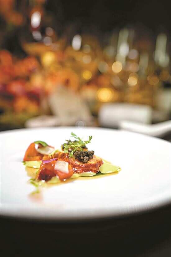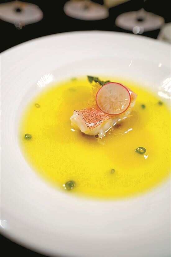 晚宴以日料餐厅“山里”行政总厨武田守弘用北海道粟蟹、海胆、长野富士苹果等打造的前菜作为开端,入口饱满汁水、海胆充盈回甘;米其林一星餐厅8½ Otto e Mezzo BOMBANA行政总厨 Riccardo La Perna的橄榄油煮蓝龙虾,以低温慢煮熟让龙虾肉保持更多的细腻柔软弹性;星际酒店行政中餐总厨兼风味居主厨陈植强则用技法老到的蒸东星球征服全场宾客味蕾。