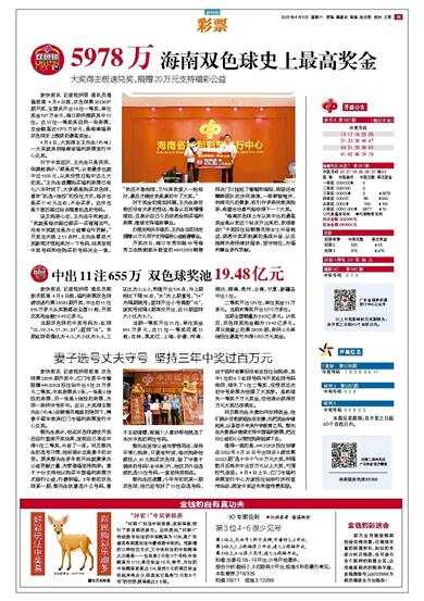 新快报讯 记者陆妍思 通讯员海福报道 4月4日晚,双色球第2023037期开奖,全国共开出16注一等奖,单注奖金597万余元,海口彩民揽获其中10注。这10注一等奖来自同一张彩票,总金额高达5978万余元,是海南福彩双色球史上揽获的最高奖金。