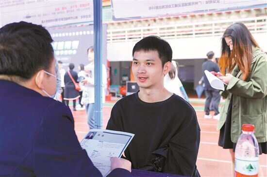 招聘会开始一个多小时,来自香港岭南大学的方同学已经投出了3份简历。“虽然现在很多招聘改线上进行了,但还是想来现场看看。求职时会更看重是不是中大型企业,寻找更大的发展空间。”