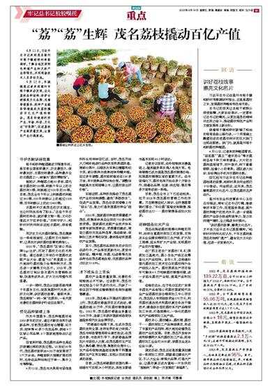 至今,茂名荔枝品质改良的步伐仍在进行中,产业得到更新优化,更受市场欢迎。糯米糍、冰荔、仙进奉等优良品种也在茂名落地生根,优质荔枝品种占比达51.69%。