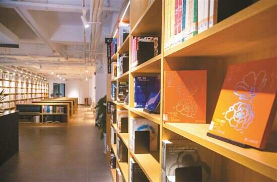 穿过人来人往的二楼展厅,你会看见一片蓬勃的绿植,室内盛开。透明落地玻璃门窗后,就是800平方米的图书馆,包括了咨询服务区、馆藏文献库、公共阅览区、专员阅览区、图书展陈区、活动休闲区及研讨、讲座功能区。