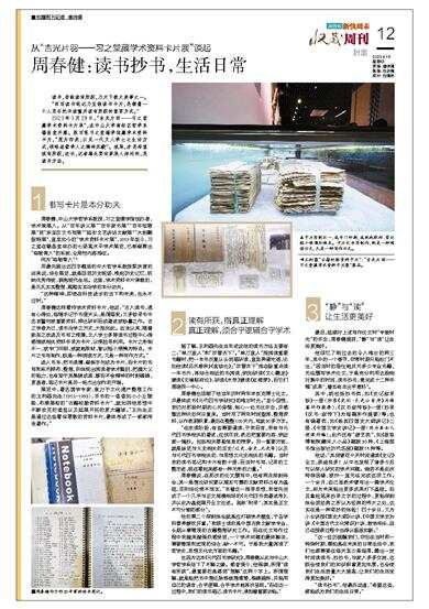 周春健这样看待学术资料卡片,他说:“古人读书,遇有心得处,每随手记于书册天头,是谓眉批;又多钞录书中名言警句或重要资料,排比研析而成著述或钞纂之作。古之学者为己,读书治学之方式,大抵如此。近世以来,随着纸张之改进及书写之便捷,文人学士多将读书过程中心得感悟或相关资料手录为卡片,以便检寻利用。卡片之形制不一,或专门印刷,或就地取材,皆以短小便携为特点。卡片之书写制作,既是一种阅读方式,又是一种写作方式。”