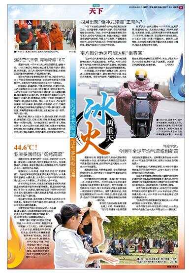 据新华社电 4月中旬以来,多地回温明显,暖意十足。17日川渝及江南部分地区最高气温突破35摄氏度,仿若初夏。这几天,强冷空气带来剧烈降温,大部地区经历激烈冷暖转换,升温进程被打断。
