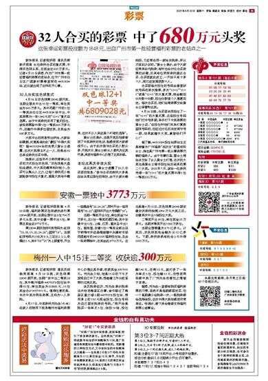 新快报讯 记者陆妍思 通讯员郭新庆报道 32位彩民合买的复式票,中得双色球头奖,总奖金达680万多元。记者4月21日获悉,作为广州市第一批经营福利彩票的老站点,位于广州市白云区广园新村景泰直街的44010034站,近日就出现了这样的开心事。