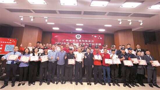 新快报讯 记者庄嘉宝 实习生陈雪儿 通讯员广正发 王茵报道 25日,广州市见义勇为基金会举行2023年第二批见义勇为平民英雄慰问奖励仪式,对全市近期涌现的36名见义勇为平民英雄进行集中慰问奖励。他们凡人义举却微光成炬,用实际行动传递社会正能量,用爱和勇气温暖羊城。