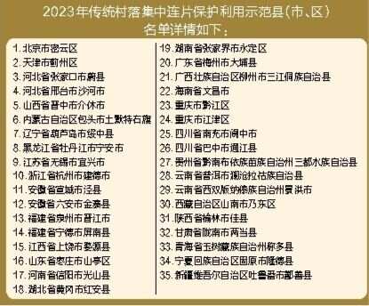 据新华社电 记者27日从住房和城乡建设部获悉,2023年传统村落集中连片保护利用示范名单公布,北京市密云区、湖南省张家界市永定区、四川省南充市阆中市等35个县(市、区、旗)位列其中。各示范县将坚持“保护为先、利用为基、传承为本”原则,增强传统村落内生发展动力,不断形成当地传统村落保护利用经验和模式。