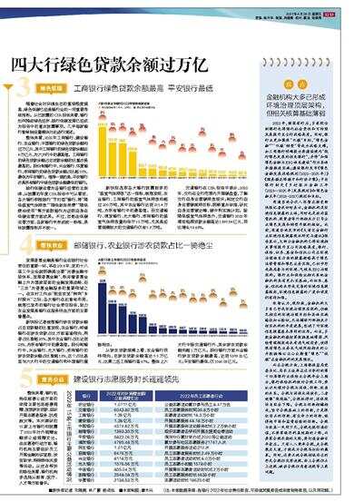 工商银行绿色贷款余额最高 平安银行最低