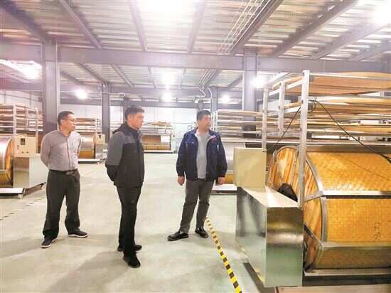 ■曹庆华(中)在棉洋天池茶叶综合提升示范基地了解新厂房运转情况。