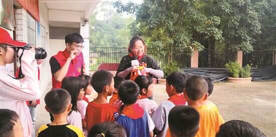 ■刘佳在梅州市五华县华城镇洋田小学开展“庆六一”活动。