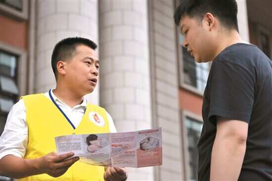 ■“托举哥”周冲为市民介绍“地贫”相关知识。