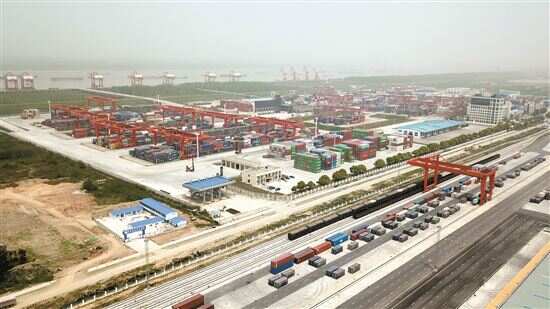■这是4月12日在湖南岳阳拍摄的城陵矶港国际集装箱码头和多式联运物流园(无人机照片)。