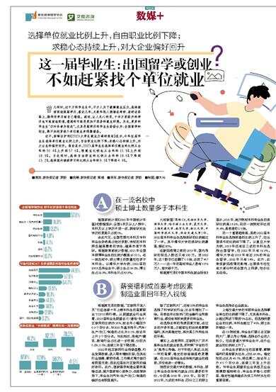 曾几何时,过千万的毕业生中,不少人为了缓解就业压力,选择继续深造提高学历,最近几年,无数年轻人拥堵在考研、读研这条路上,期待用学历给自己增值。然而,让人扎心的是,千辛万苦提升的学历也可能面临贬值,遭遇的可能是更加不容易的就业环境。为此,更多的毕业生“识时务者为俊杰”,尤其是高学历的毕业生纷纷认为:出国留学和创业,都不如赶紧找个单位就业来得靠谱些。