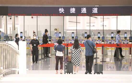 5月15日,旅客准备通过北京大兴机场边检站快捷通道。国家移民管理局发布公告,5月15日起实施全面恢复口岸快捷通关,进一步保障便利中外出入境人员往来。新华社发
