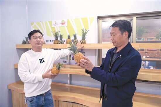 在湛江市小鲜菠农业科技有限公司(简称“小鲜菠”)的标准化厂房里,工人们穿着统一的白色工服,头戴白色工作帽,手戴塑胶手套,挑选过的小菠萝经过削皮、消毒清洗、分拣装袋,消费者开袋便可直接食用,美味又便捷。