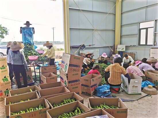 眼下,湛江市徐闻县前山镇云子村400亩高标准现代农业种植园又迎丰收,80多名村民正在忙碌地采摘辣椒。田头小站里,村民们将辣椒分拣后装箱打包、装上大货车。这里就是广州市南沙区派驻前山镇帮扶工作队产业帮扶项目——前山现代农业产业示范园(牛哥驿站)。
