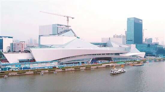 ■“三馆合一”项目整体建筑犹如一艘“陶瓷”巨轮,在珠江边等待扬帆起航。 新快报记者 郭思杰/摄