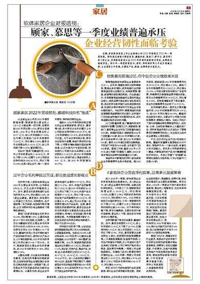 近期,多家软体家居上市企业陆续公布2022年财报及2023年一季度财报。新快报记者统计顾家家居、麒盛科技、喜临门、梦百合、慕思等5家A股企业,发现软体家居企业2022年的营收差距依旧明显,品牌效应继续突显。而今年一季度财报显示,营收、净利润双降几乎成为普遍态势,企业想要从中突围,还需在产品、渠道、品牌等多方面发力。