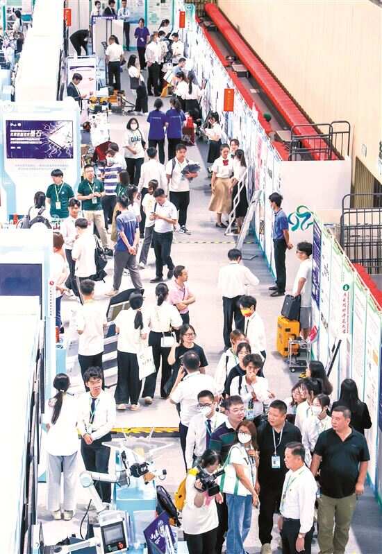 此外,展馆内的大学生科技创新作品展也正式开放。展览面积达到两千余平方米,汇聚了来自全省各高校的八百余个精彩展示项目。本次展览将持续两天,为广大青年学子交流思想、互学互鉴提供交流平台。