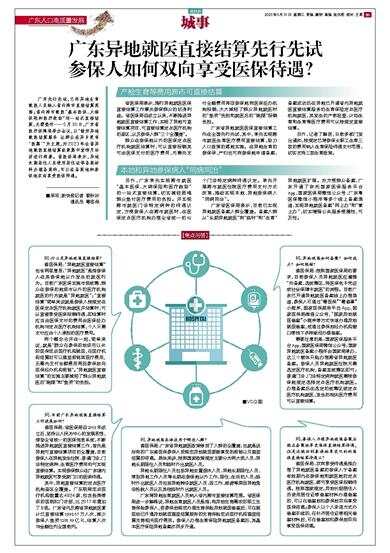 广东先行先试,已将异地生育就医人员纳入省内跨市直接结算范围;省内跨市就医“基本医保、大病保险和医疗救助”均一站式直接结算,无需垫付……5月30日,广东省医疗保障局举办会议,以“做好异地就医结算服务 让群众在异乡更有‘医靠’”为主题,对2023年全省异地就医直接结算政策集中宣传月活动进行部署。省医保局表示,异地长期居住人员使用居住证等备案材料办理备案的,可以在备案地和参保地双向享受医保待遇。