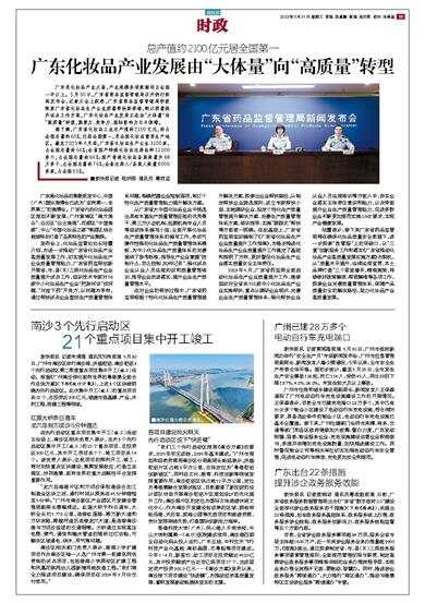 广东是化妆品产业大省,产业规模各项数据均占全国一半以上。5月30日,广东省药品监督管理局召开例行新闻发布会,记者从会上获悉,广东省药品监督管理局积极探索广东省化妆品生产企业质量帮扶新举措,制订质量提升试点工作方案,广东化妆品产业发展正在由“大体量”向“高质量”转型,集聚力、竞争力、国际影响力与日俱增。