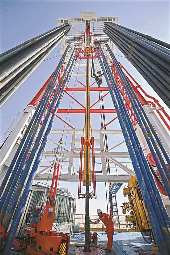 ■5月30日,深地塔科1井,工程师在检查钻机运行状况。新华社发